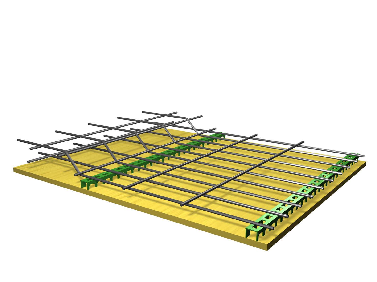 In cases where mesh is used as upper reinforcement in a slab support, its position can be se-cured with the use of an S-shaped mesh spacer placed on the lower reinforcement grate along the length of the plastic spacer.
