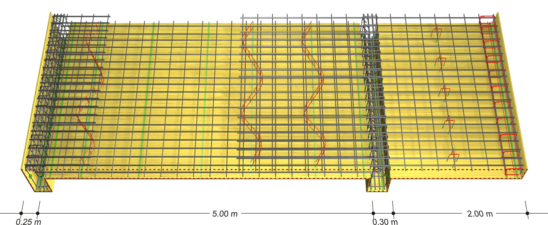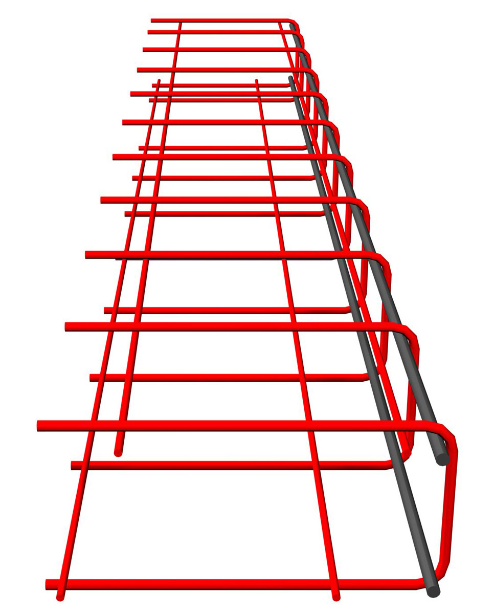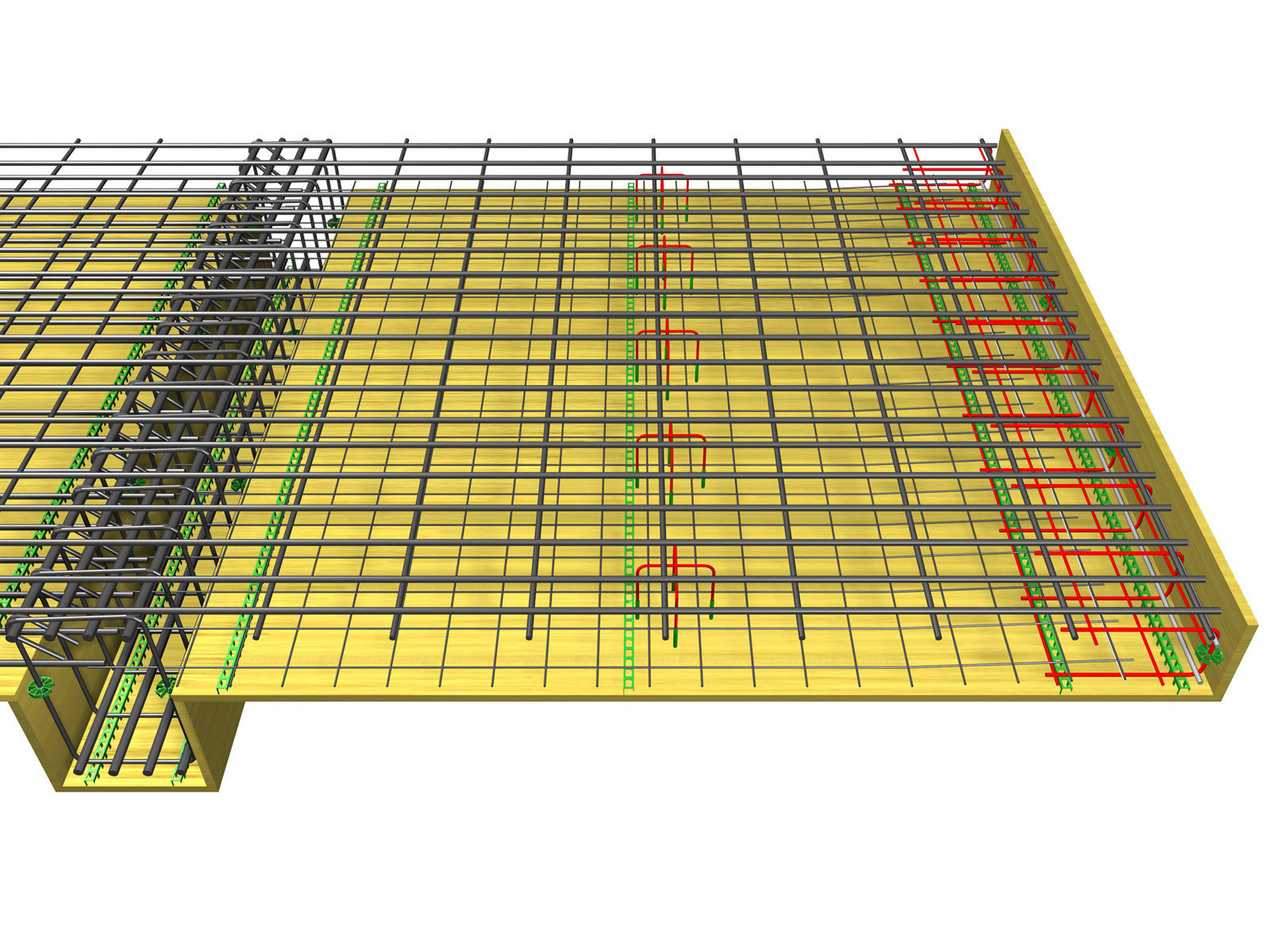Just like in superstructure slabs, in the areas around the slab edges, “J-pin” rebars may be combined with open or closed reinforcement mesh.