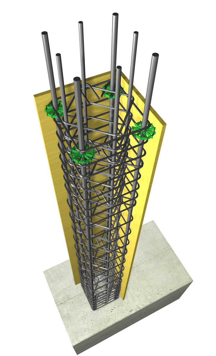 In every case though, spacers must be fitted after the positioning of the stirrup cage in order to facilitate the implementation of the cage and the proper centering of rebars.
