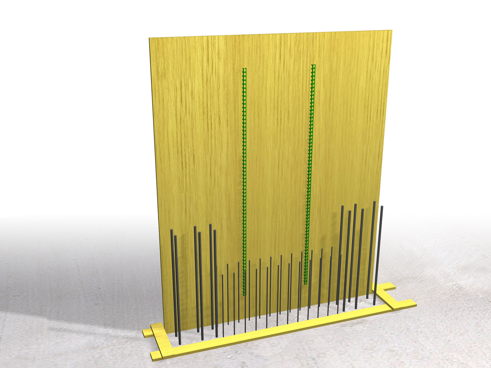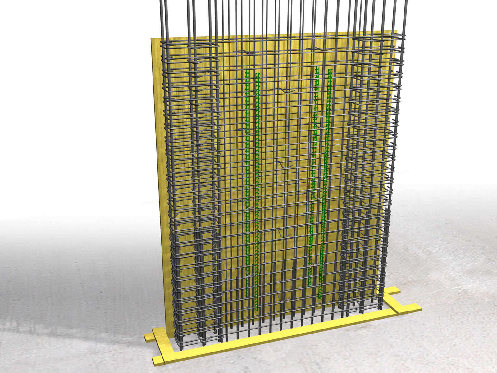 After the reinforcement implementation and prior to ‘closing’ the shear wall’s formwork, the two plastic tracks are tied upon the inner reinforcement grate.