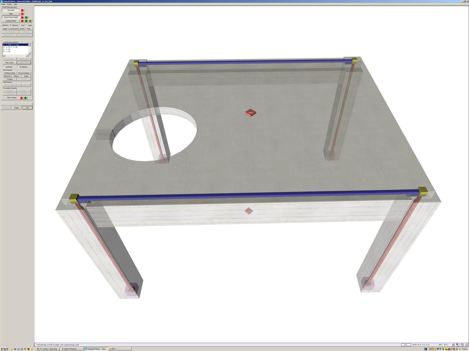 Figure 3.3.5-1: The slab with a hole is modelled either accurately as a diaphragm using finite elements, either approximately using the appropriate assumptions, e.g. ignoring the diaphragmatic function