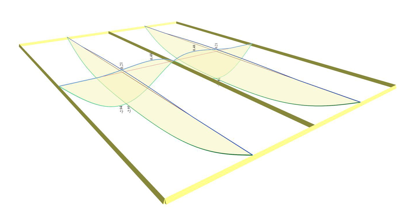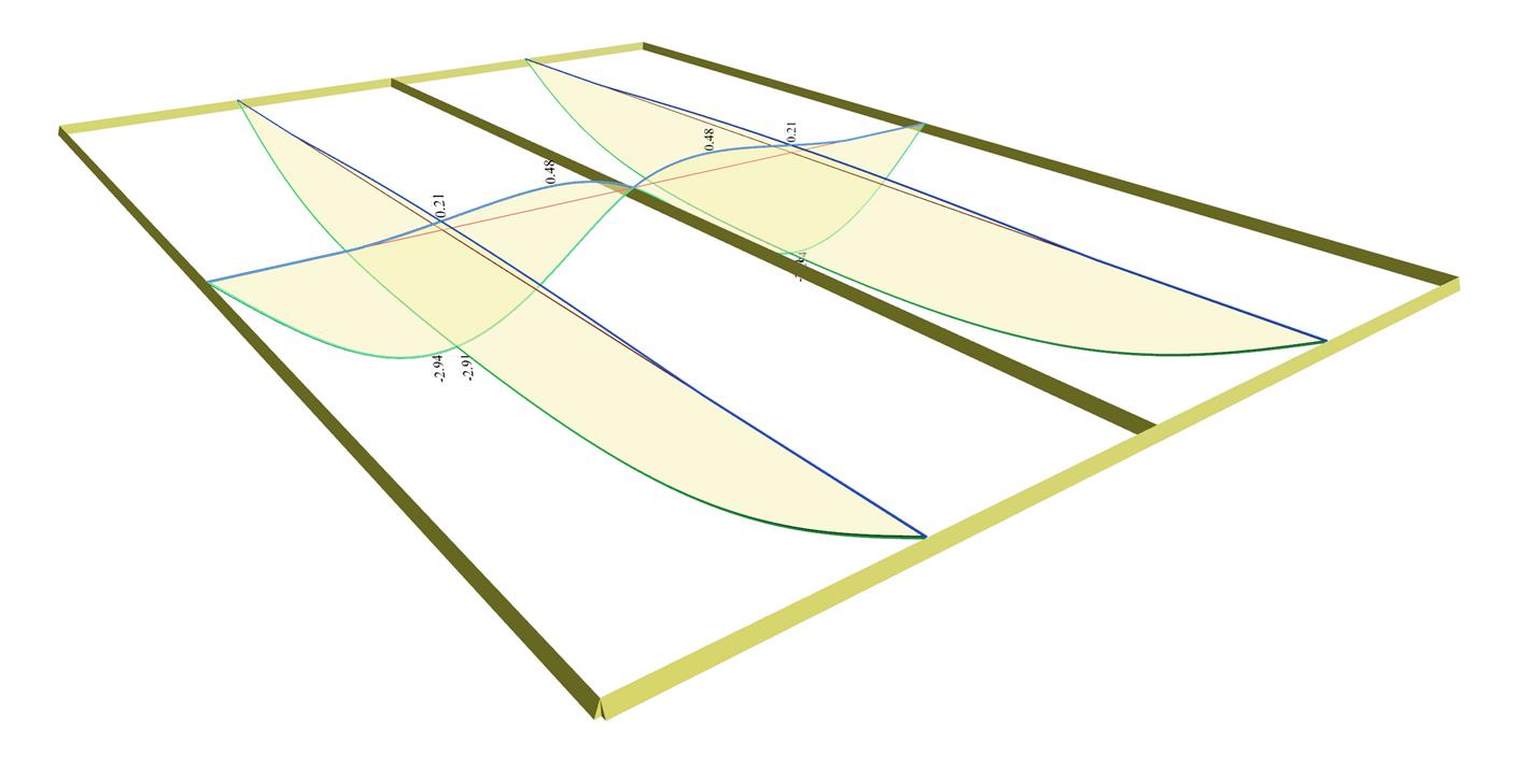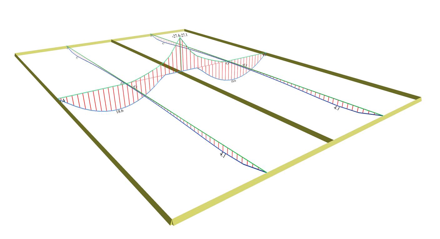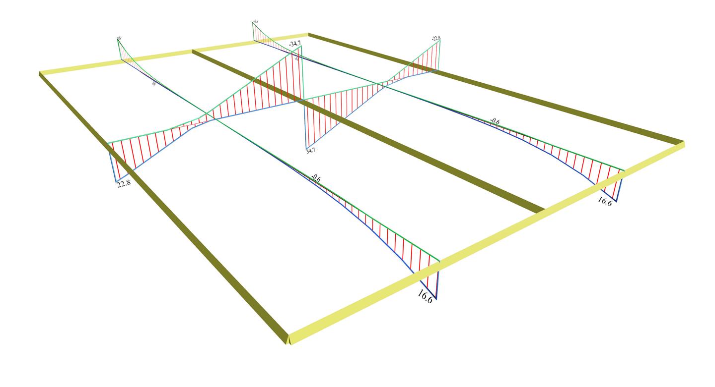 Figure 4.2.3-16: Front view of the 3D bending moment diagrams, corresponding to the envelope of [Mx] Figure 4.2.3-16: Front view of the 3D bending moment diagrams, corresponding to the envelope of [Mx]