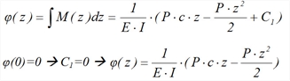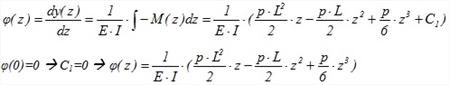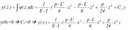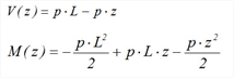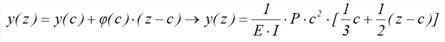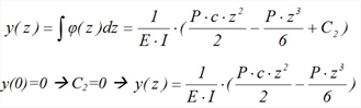 The elastic line is calculated, considering separately the uniform load p and the concentrated load P. The left end of the bar is considered to be the origin of coordinate z (local coordinate system xyz, where z is the bar axis). For uniform load p along entire length L :