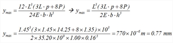 fm=0.0180x9.75x103N/m2x5.04m4/(35.20x109N/m2x1.0mx0.163m 3)==761x10-6m=0.76 mm