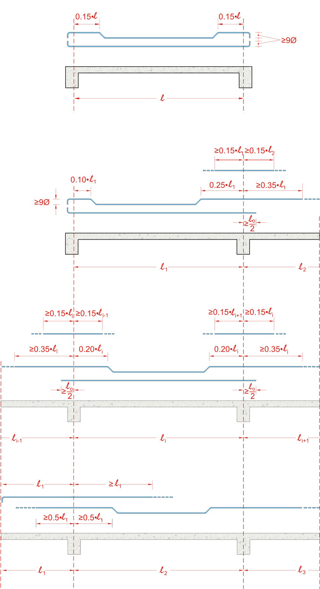 • When the lower rebars are being bent in order to provide support reinforcement, the straight created upper horizontal part must be extended by the anchorage length.