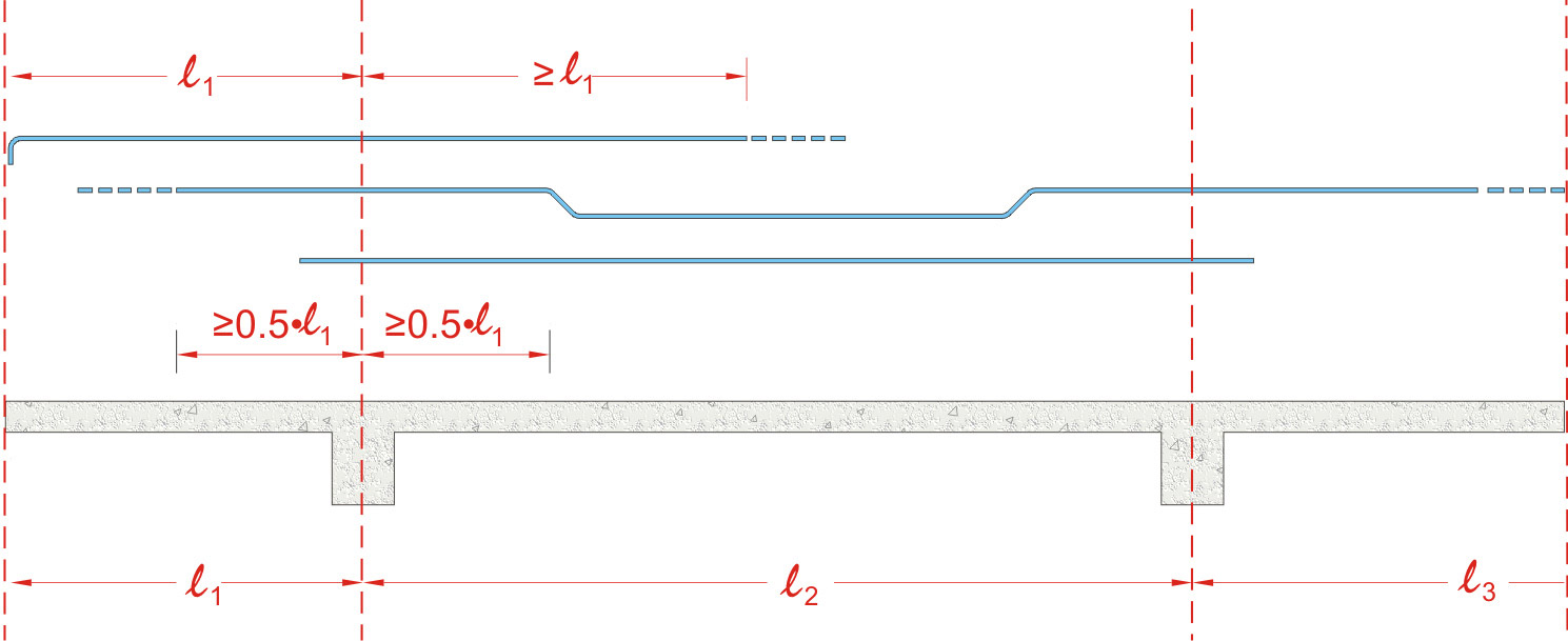 This paragraph refers to some of the rules that one should follow when bending slab rebars. These rules apply to both one-way and two-way slabs, with usual lengths and commonly ap-plied loads and only when the reinforcement detailing is not provided by another more accurate way.