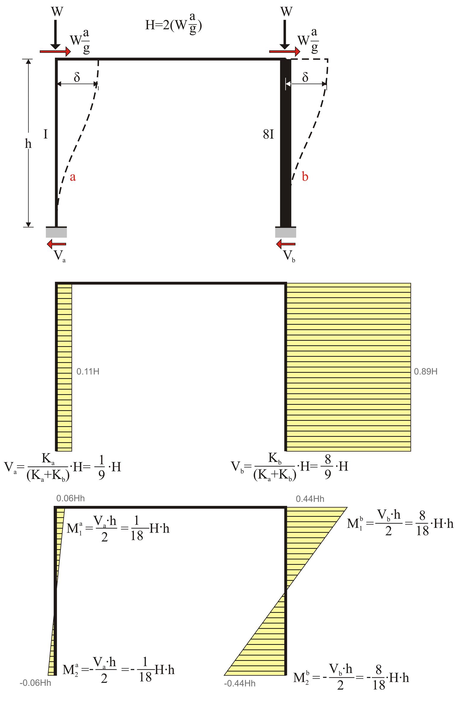 Ka=12EI/h3= 31.10·106 N/m and Kb=12E · 8I/h3=8· 31.10·106N/m =248.8 · 106 N/m