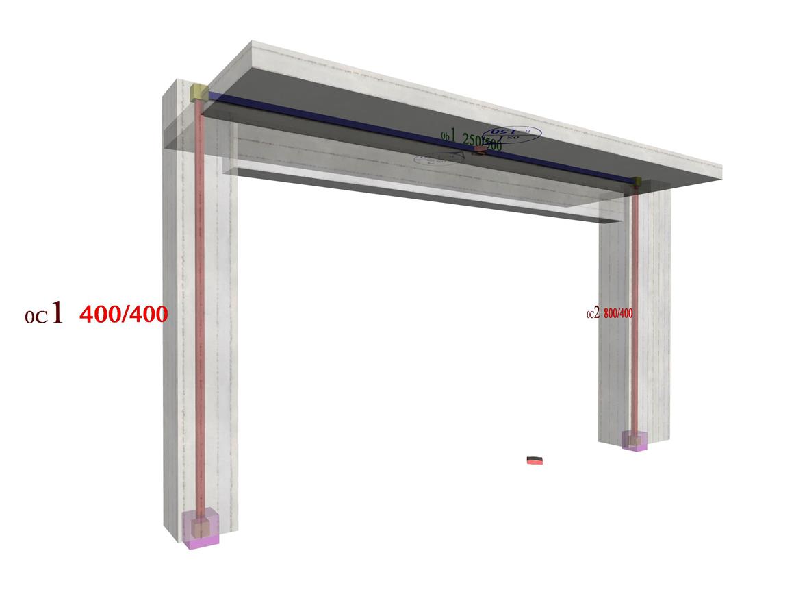 In project <B_513> of the related software, the cross-sections of columns C1, C2 are 400/400 and 800/400 respectively and their height is equal to 3.0 m. The flanged beam has cross-section 250/500/1010/150 and span 5.0 m.