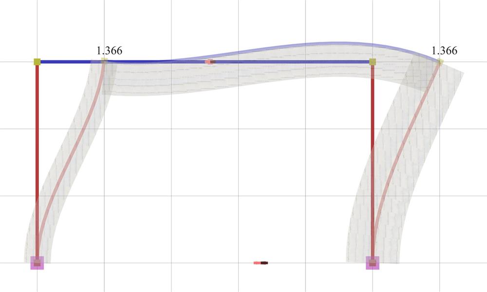 It should be noted that the actual displacement δ=1.366 mm of the crossbar is higher than the theoretical value δ =0.572 mm derived under the assumption of fixed end conditions. This is mainly due to the strong column and the significantly smaller stiffness of the normal beam.
