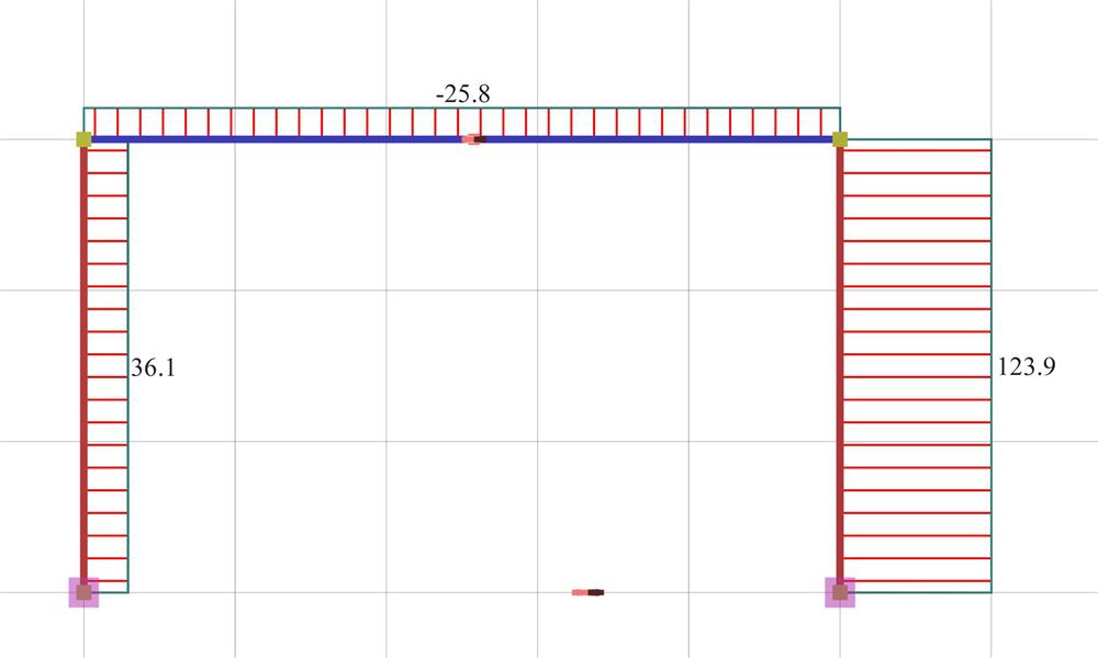 Figure 5.1.3-1: 89% and 11% of the seismic action are carried by the strong column (800/400) and the weak column (400/400) respectively