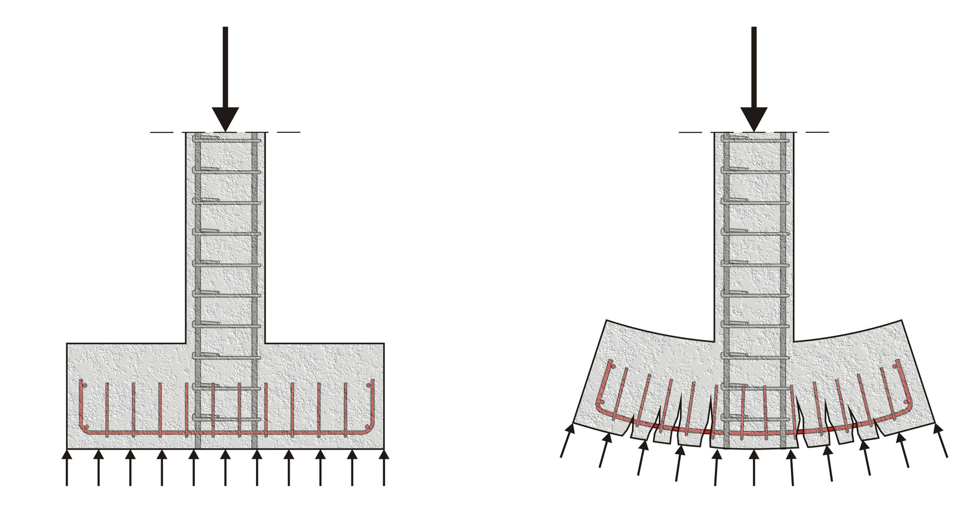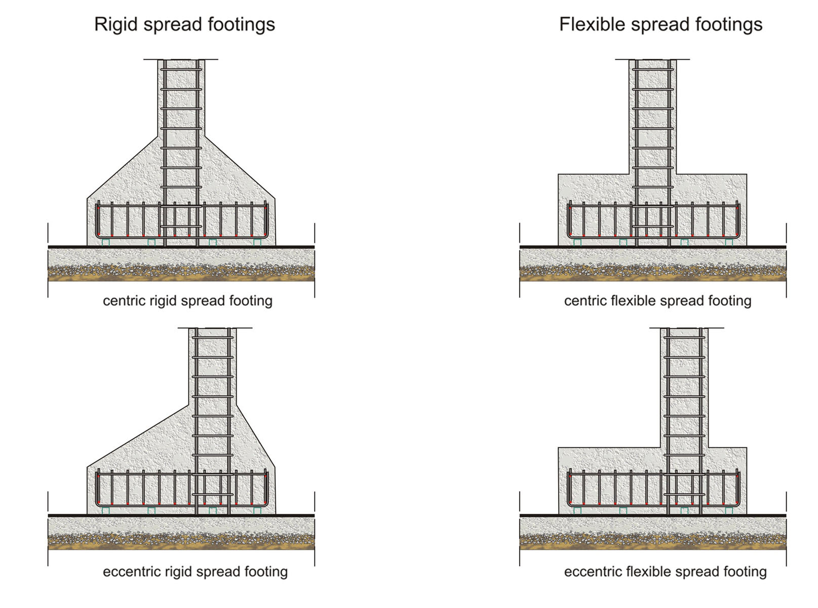The reinforcement is the same both for flexible and rigid spread footings either being centrically or eccentrically constructed.