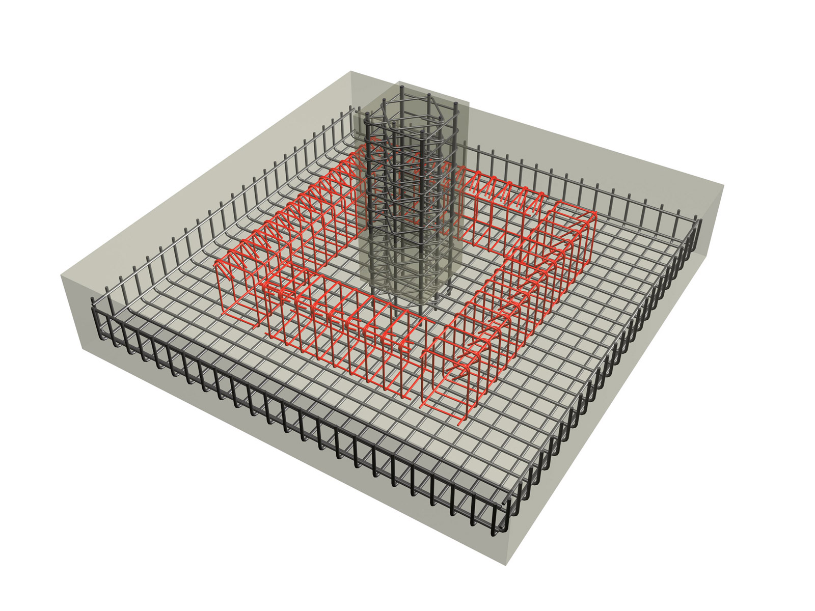 In some other cases, the spread footing may have punching shear reinforcement as well. This reinforcement is usually provided in the form of a peripheral stirrup cage.