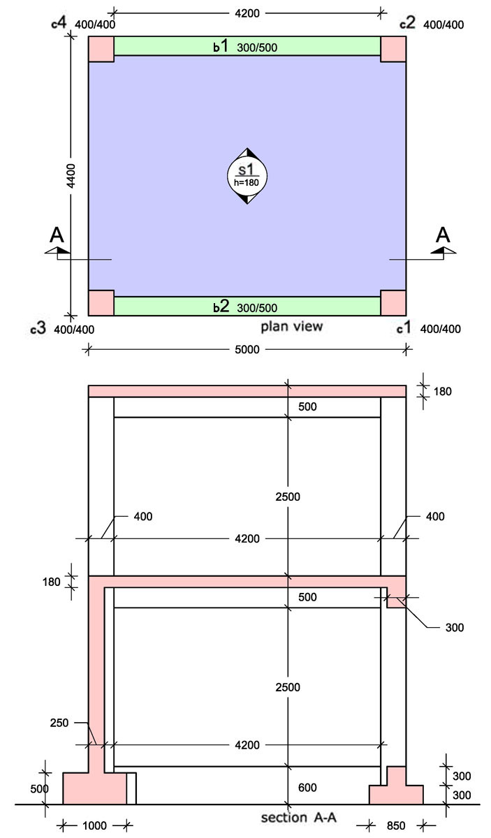 0,60 m, compared to the footings’ depth which is 0,50m):
