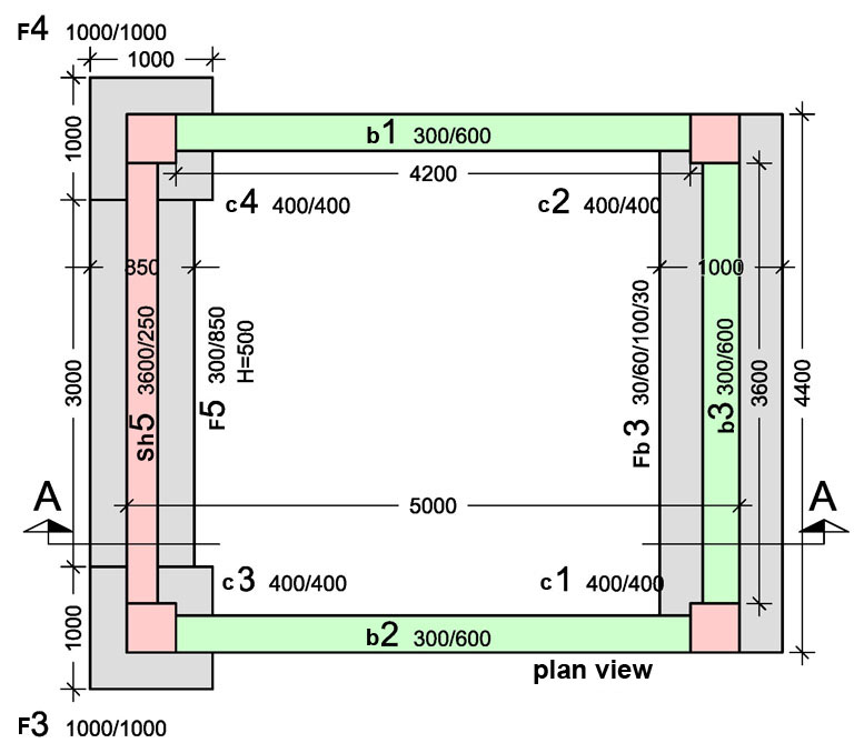 b1,b2: 2 x [(5,00-2 x 0,40) x 0,30 x 0,32] = 0,81